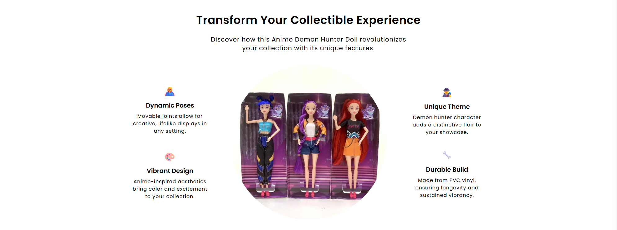 We love our Anime Demon Hunter Doll and are confident you will too! That’s why we’re offering a 30-Day, Risk-Free Guarantee. If you’re not satisfied, we’ll gladly issue a full refund in accordance with our Return & Refund Policy